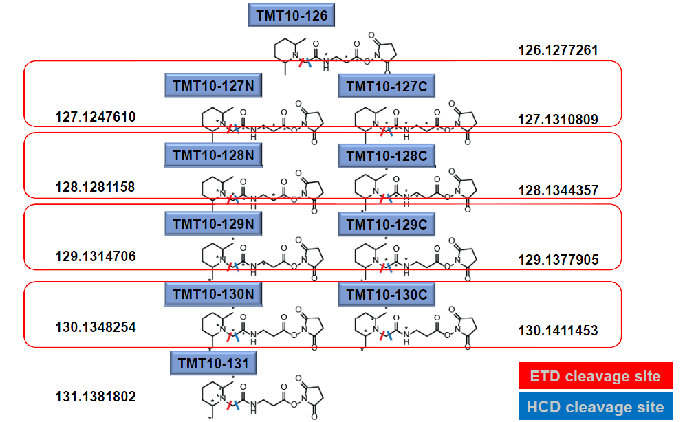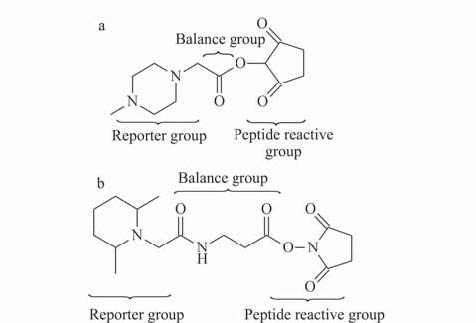 圖 1: (a)iTRAQ和 (b)TMT試劑的結構示意圖 圖2:Thermo Scientific TMT試劑– TMT10